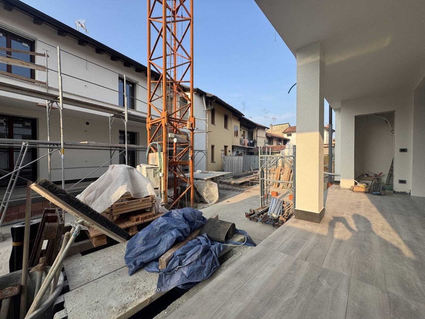 VIA MONTENERO, nel cuore del paese, posizione centralissima e servitissima adiacente il parco e le scuole, fine costruzione in consegna gennaio 2026, nuovo e pregiato intervento di sole 6 unita immobiliari con giardini o terrazzi, dotate di tutti i comfort di ultimissima generazione e con la massima efficienza energetica in classe A4 (Predisposizione Domotica Smart gestibile a distanza, videocitofonia sul cellulare, predisposizione allarme, zanzariere, riciclo d'aria con VMC (dona aria sana all'ambiente dove si vive), climatizzazione estiva e invernale a costo zero alimentati dal fotovoltaico, cablaggio rete internet veloce. Appartamento B1 - 4 locali posto al piano terreno con giardino privato, possibilità di box singoli o doppi.