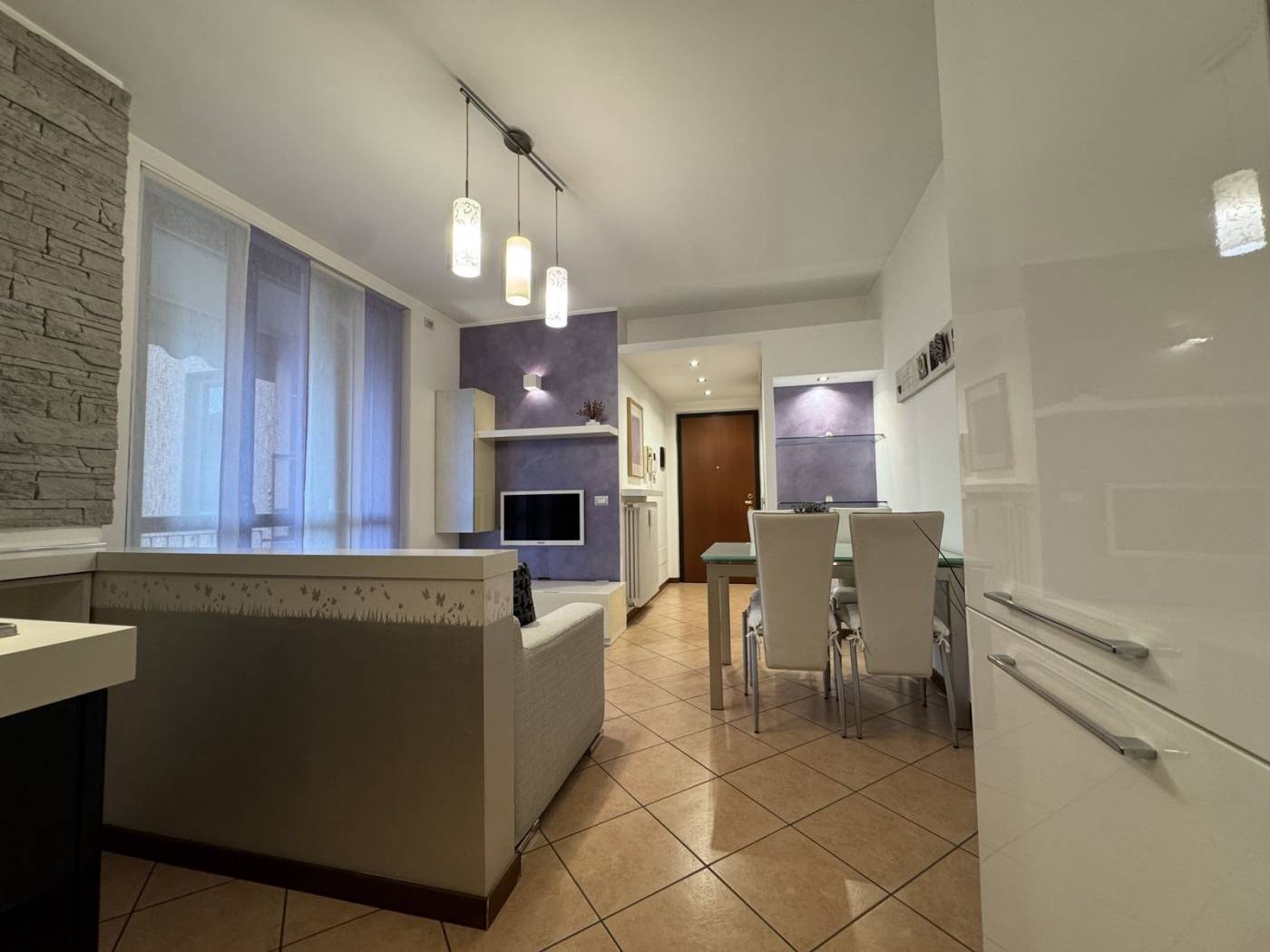 a soli 600 metri fermata metropolitana e a due passi supermercato Esselunga, in contesto signorile di recente costruzione, affittiamo introvabile e stupendo bilocale completamente arredato su misura con arredi di pregio, composto da zona di ingresso con armadiatura a muro, soggiorno con angolo cottura da cui si accede ad un terrazzino attrezzato e vivibile dotato di tenda sole motorizzata, disimpegno con ulteriore armadio a muro, bagno con mobiletto lavello di pregio e ampia doccia, camera matrimoniale in parquet con letto contenitore in ecopelle completo di materasso e armadio con ante scorrevoli. L'immobile è accessoriato di climatizzatore nuovo inverter Haier nella zona giorno, TV LED Samsung a parete nella zona giorno, lavatrice/asgiugatrice nuova Electrolux, lavastoviglie nuova, piano cottura a 5 fuochi, aspirapolvere Folletto, tenda sole motorizzata balcone, zanzariere su tutti gli infissi, tendaggi interni fatti su misura completa la proprietà un ampia cantina scaffalata ed ampio box singolo. LIBERO SUBITO!!! termoautonomo