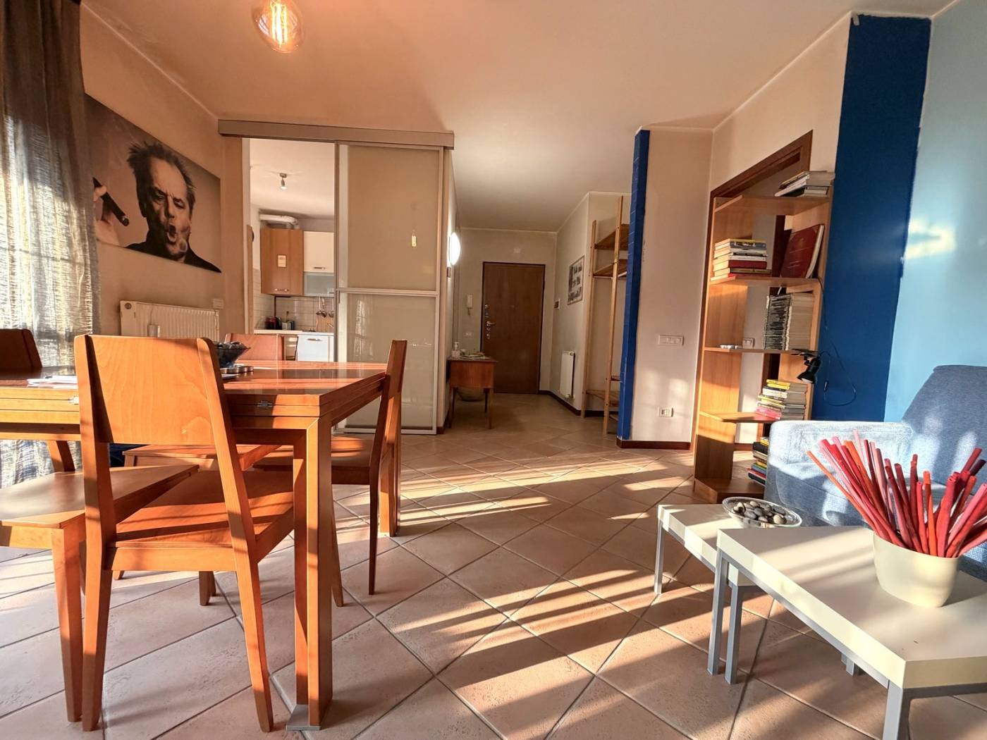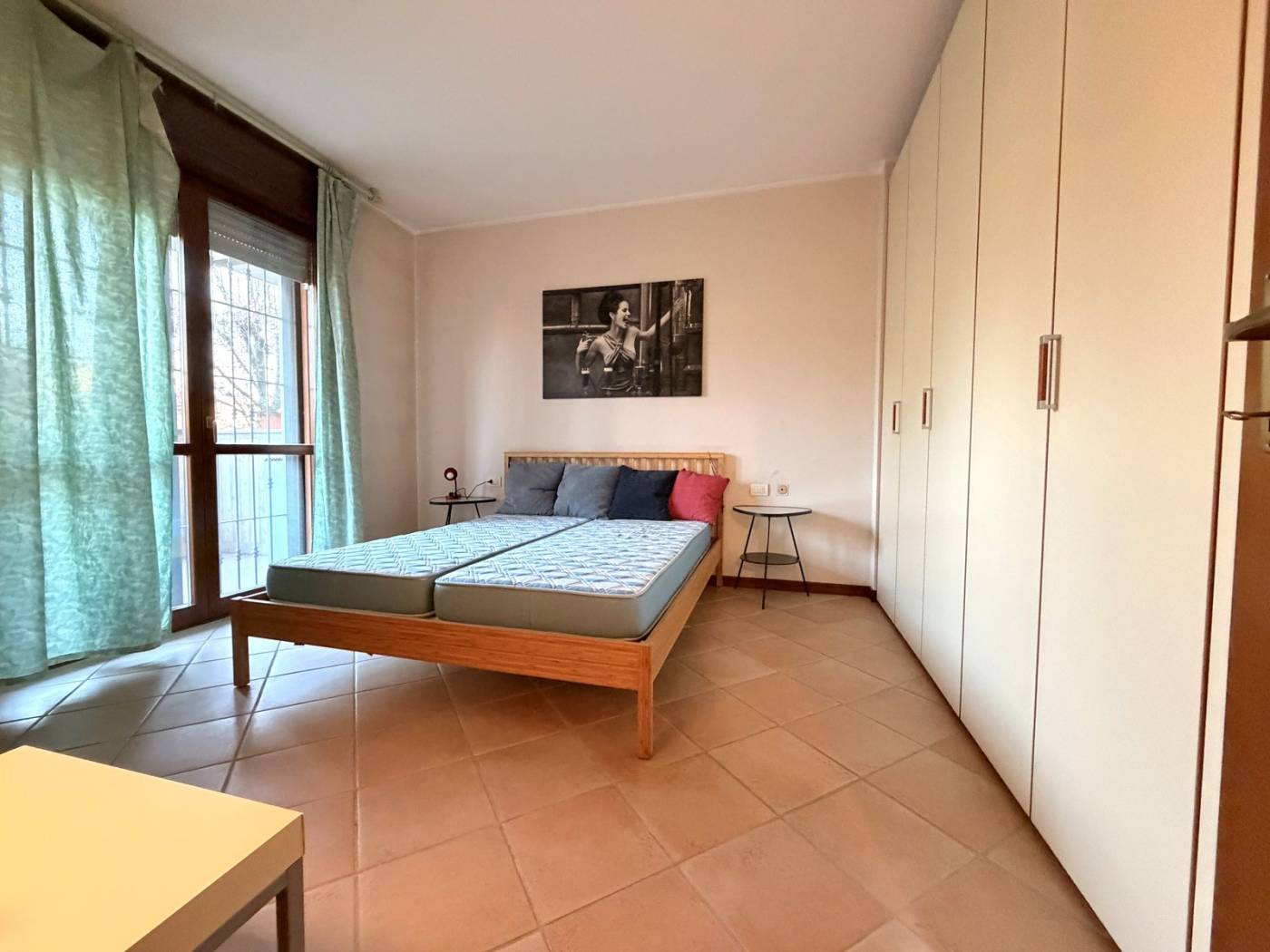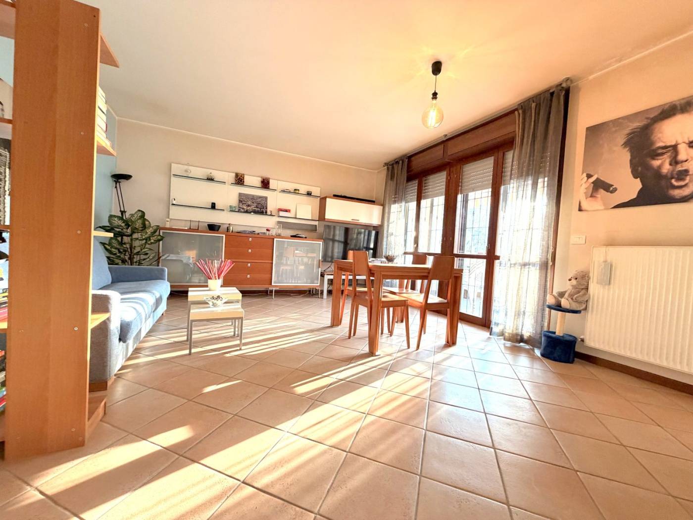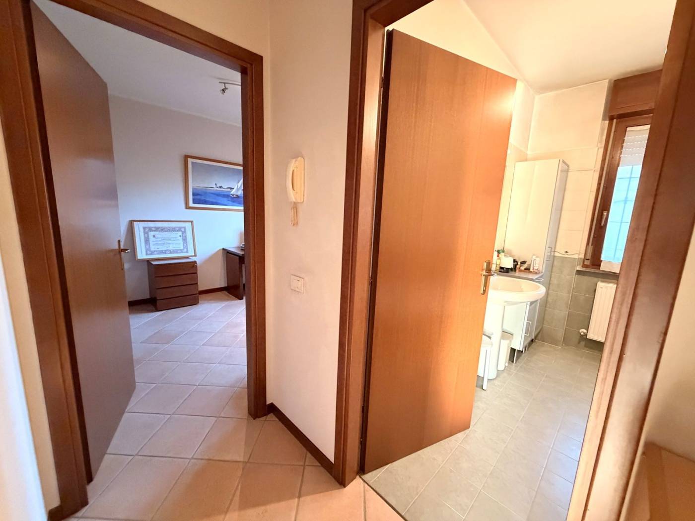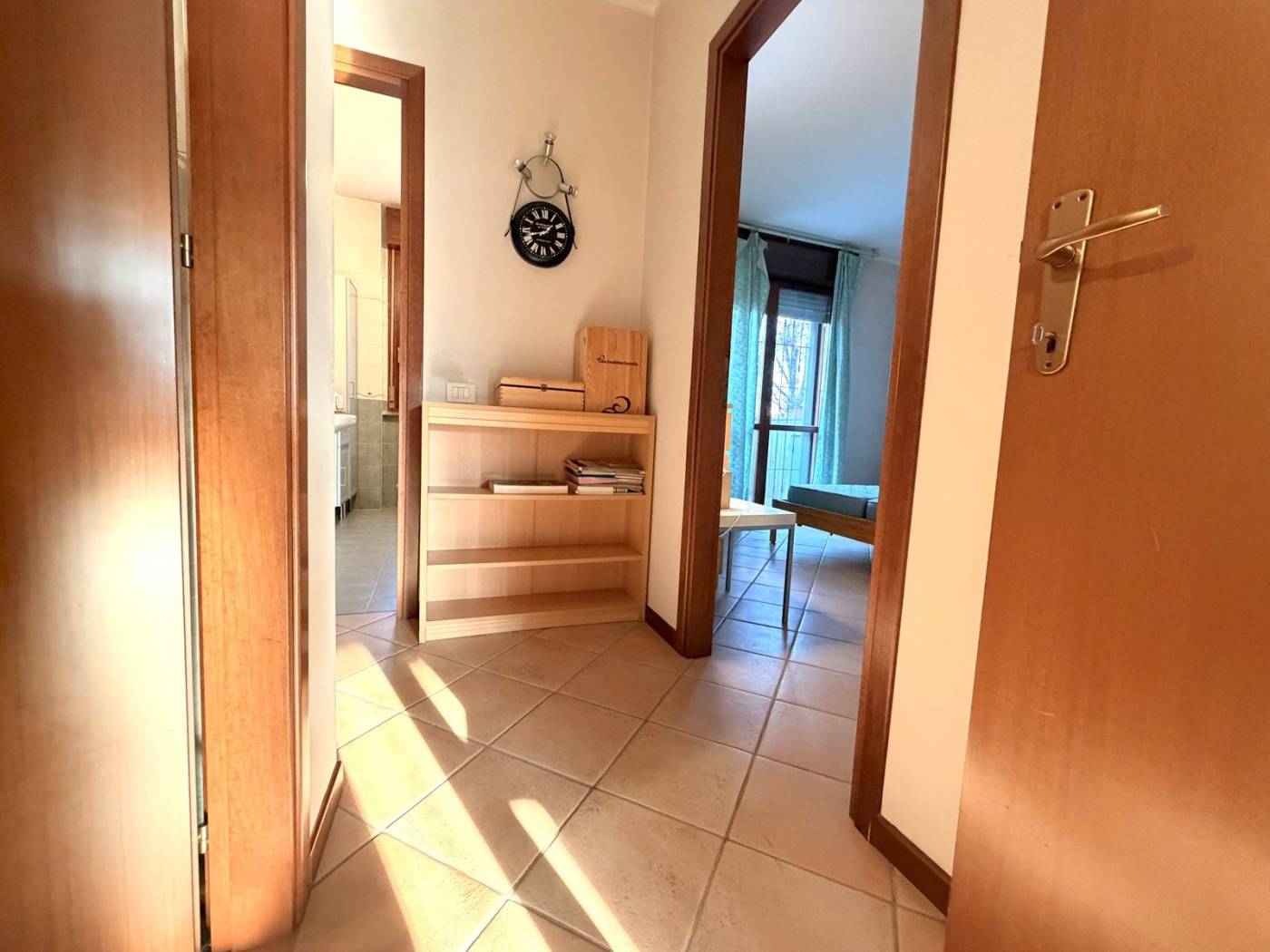 L'appartamento, posto al primo piano con ascensore, è rifinito in pregiato Cotto D'Este e offre un ingresso accogliente, un ampio soggiorno e una cucina abitabile. Dalla zona giorno si accede a un terrazzo coperto esposto a sud-est, dove poter godere di una gradevole vista sui giardini. La camera matrimoniale è dotata di un balcone sul lato opposto, mentre la cameretta è comoda e versatile.