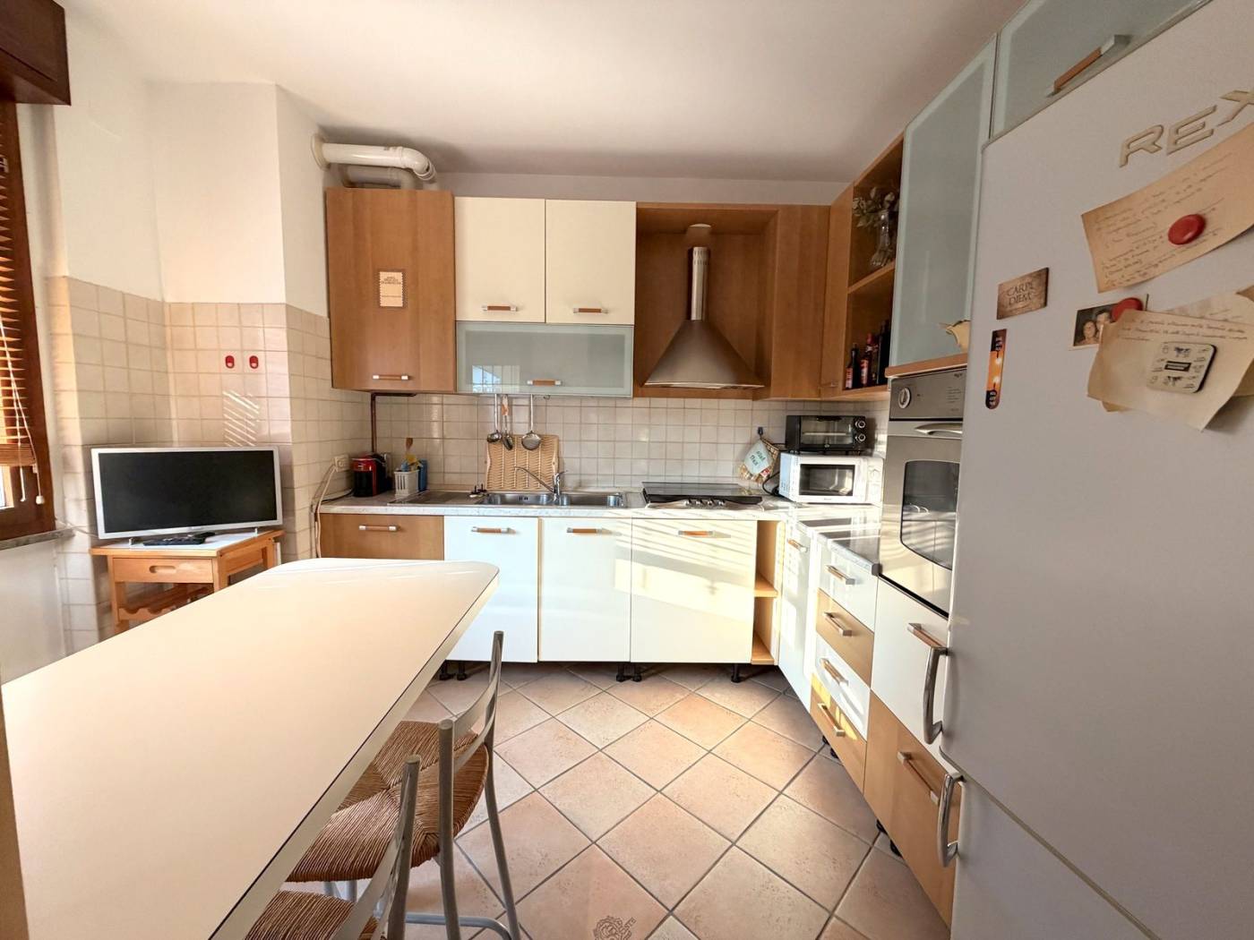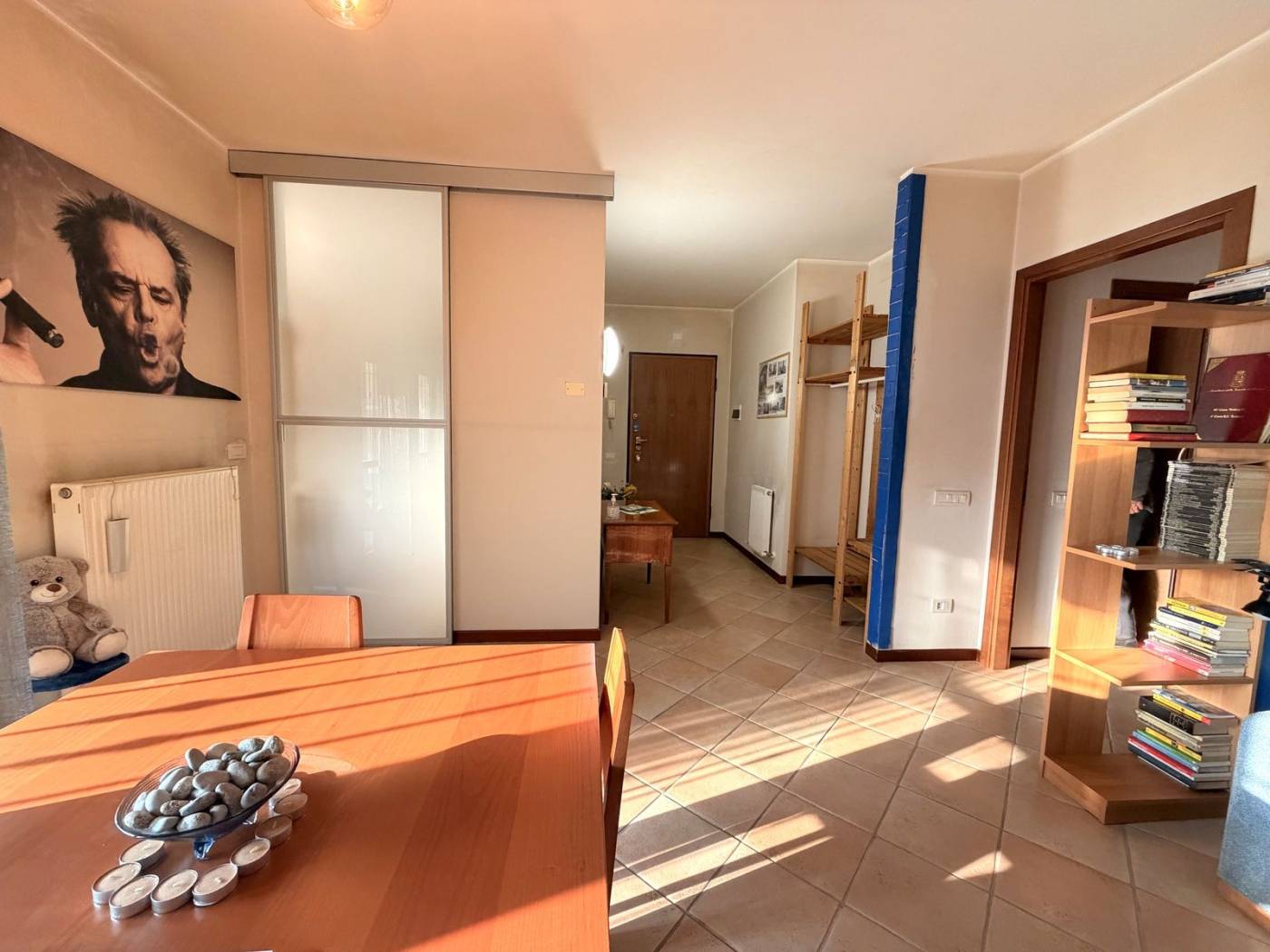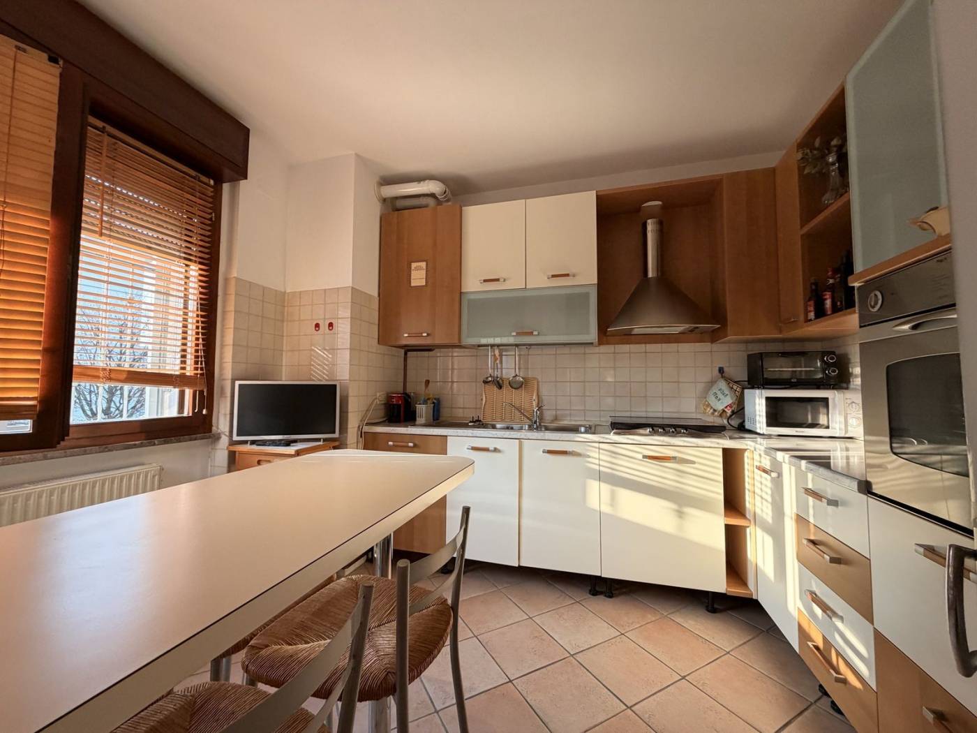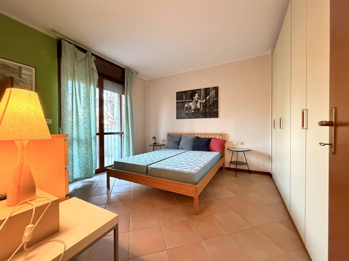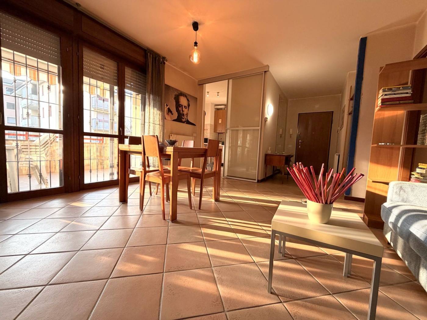 L'appartamento, posto al primo piano con ascensore, è rifinito in pregiato Cotto D'Este e offre un ingresso accogliente, un ampio soggiorno e una cucina abitabile. Dalla zona giorno si accede a un terrazzo coperto esposto a sud-est, dove poter godere di una gradevole vista sui giardini. La camera matrimoniale è dotata di un balcone sul lato opposto, mentre la cameretta è comoda e versatile.