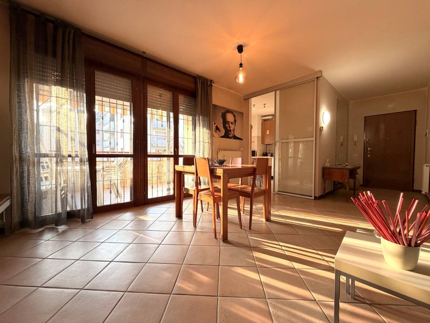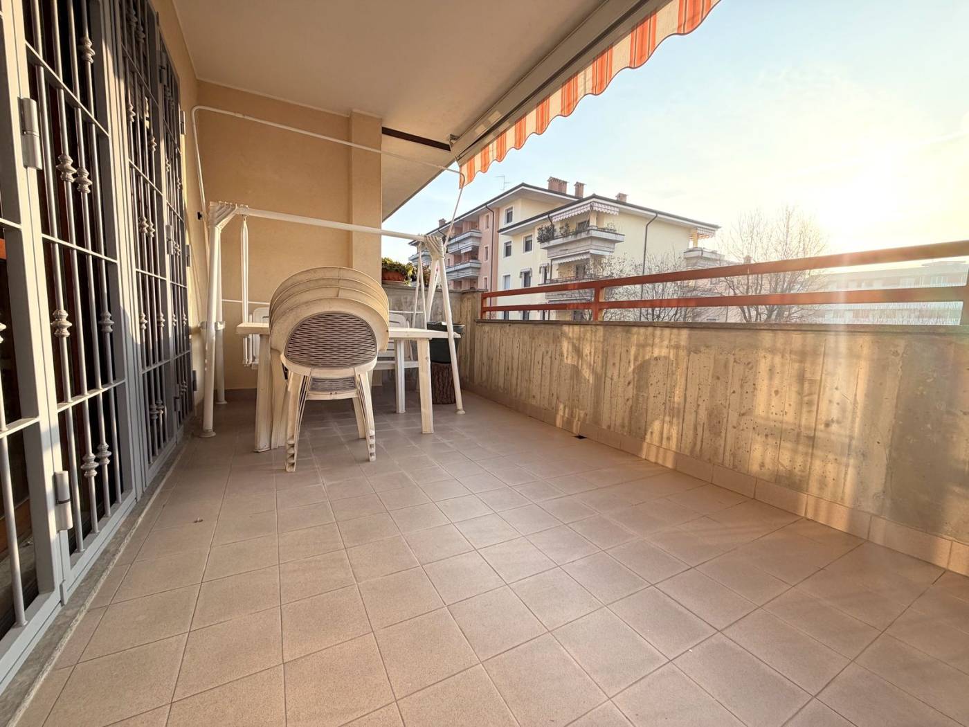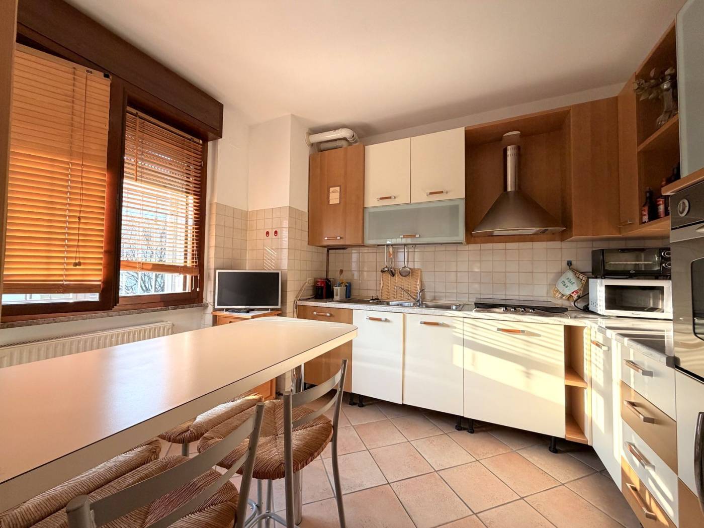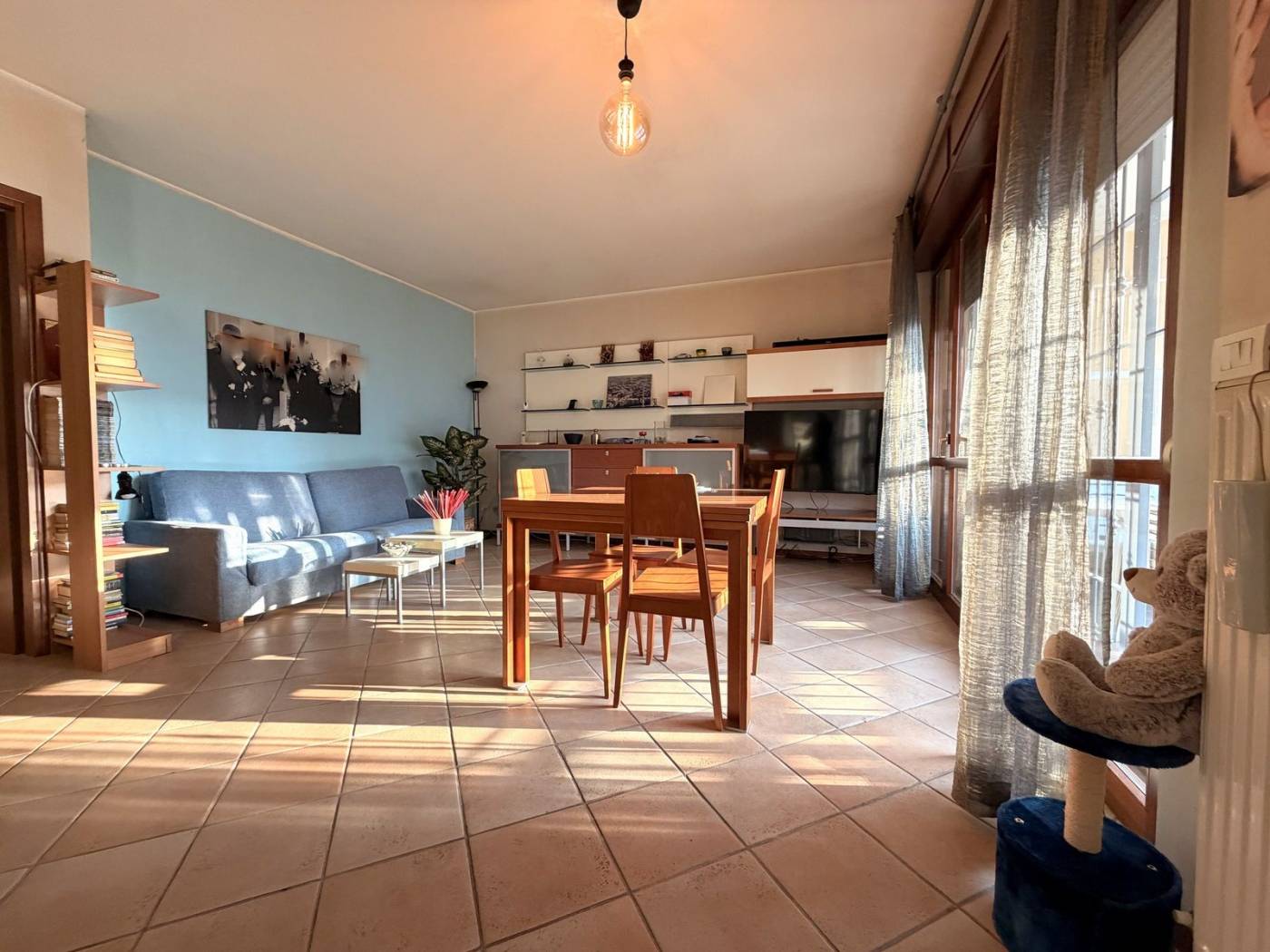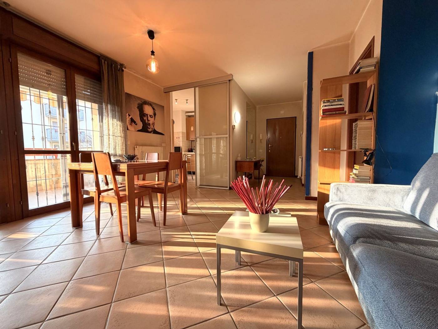 L'appartamento, posto al primo piano con ascensore, è rifinito in pregiato Cotto D'Este e offre un ingresso accogliente, un ampio soggiorno e una cucina abitabile. Dalla zona giorno si accede a un terrazzo coperto esposto a sud-est, dove poter godere di una gradevole vista sui giardini. La camera matrimoniale è dotata di un balcone sul lato opposto, mentre la cameretta è comoda e versatile.