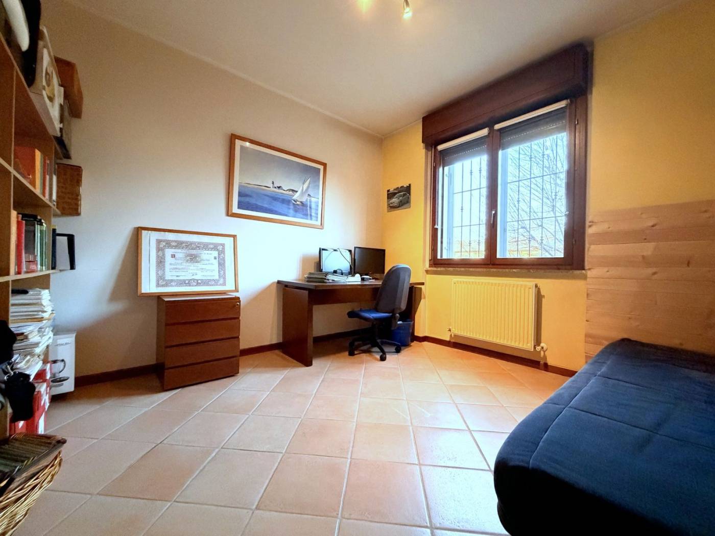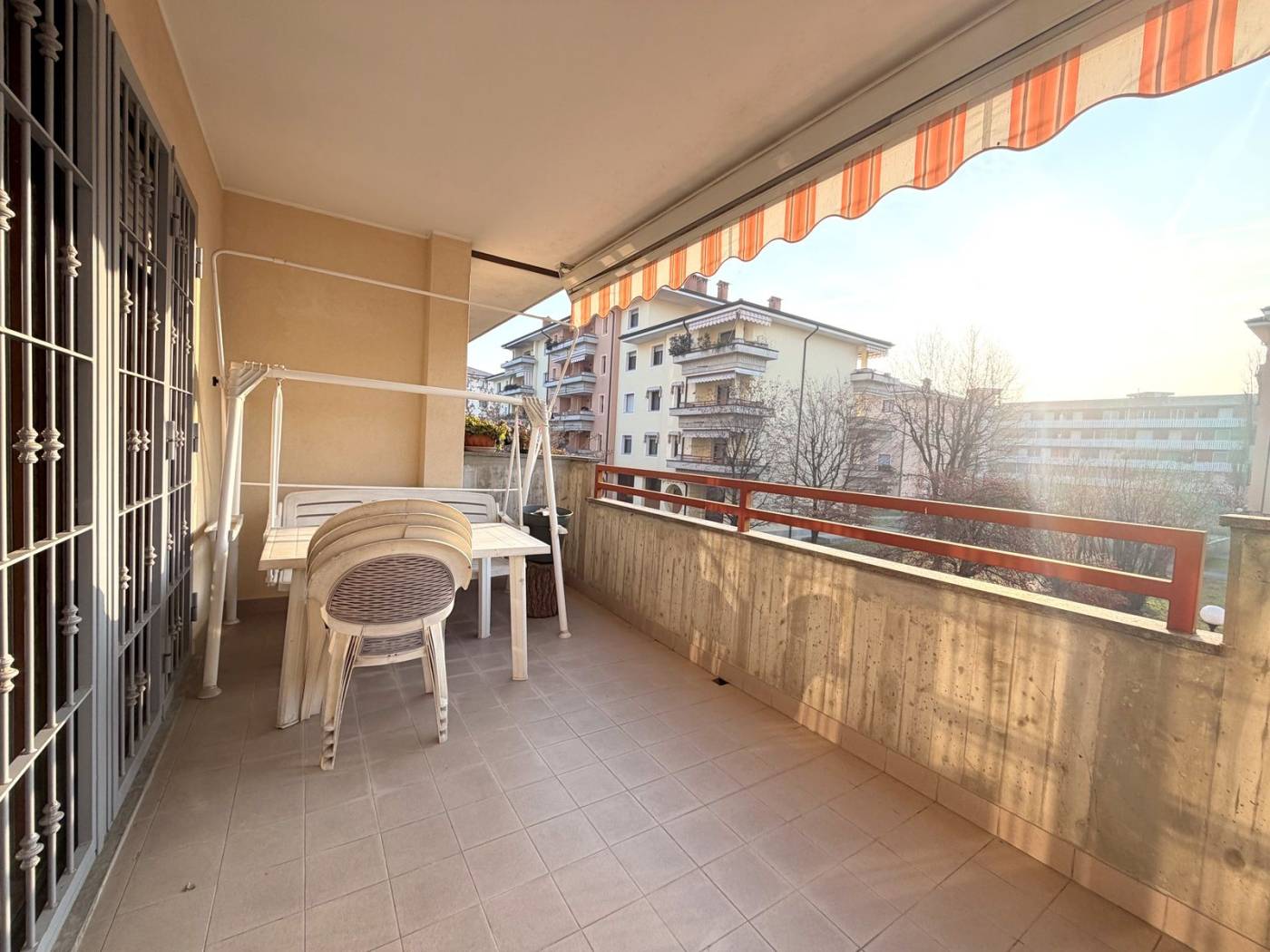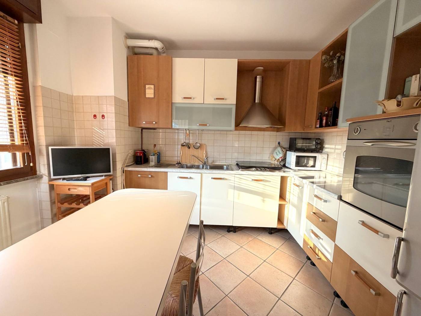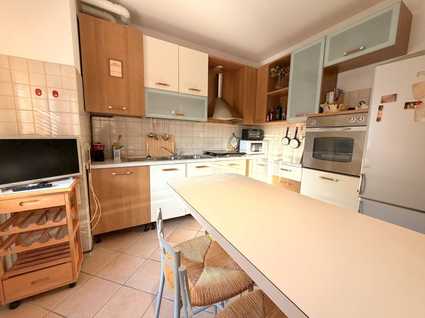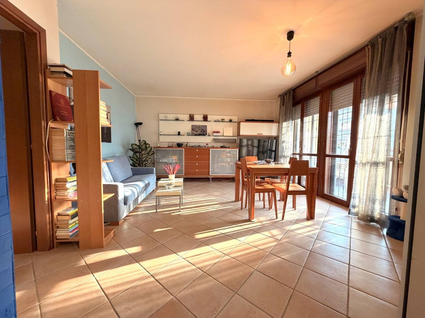 L'appartamento, posto al primo piano con ascensore, è rifinito in pregiato Cotto D'Este e offre un ingresso accogliente, un ampio soggiorno e una cucina abitabile. Dalla zona giorno si accede a un terrazzo coperto esposto a sud-est, dove poter godere di una gradevole vista sui giardini. La camera matrimoniale è dotata di un balcone sul lato opposto, mentre la cameretta è comoda e versatile.