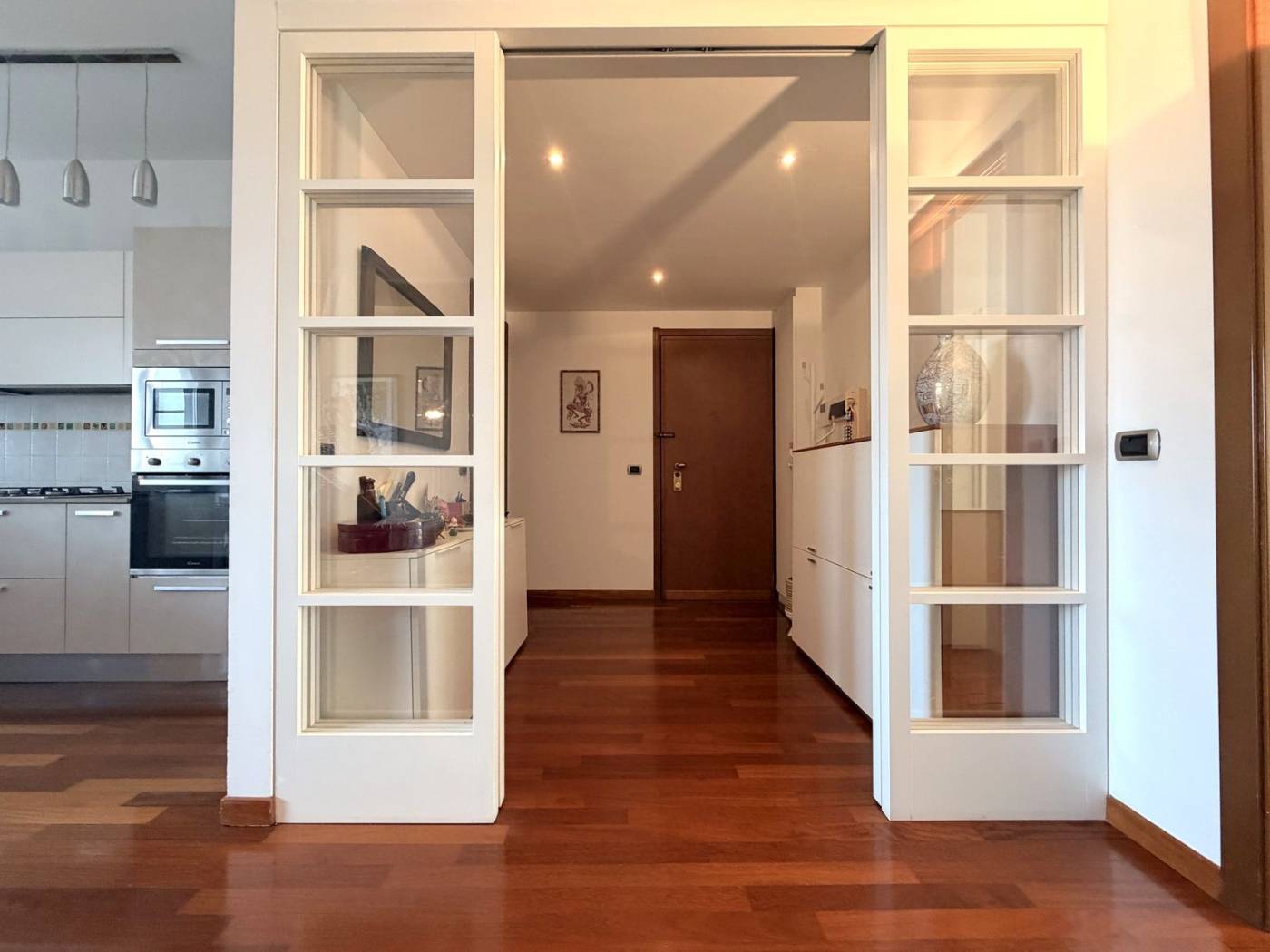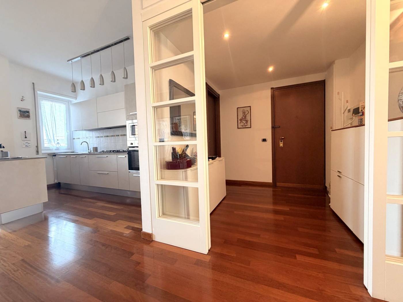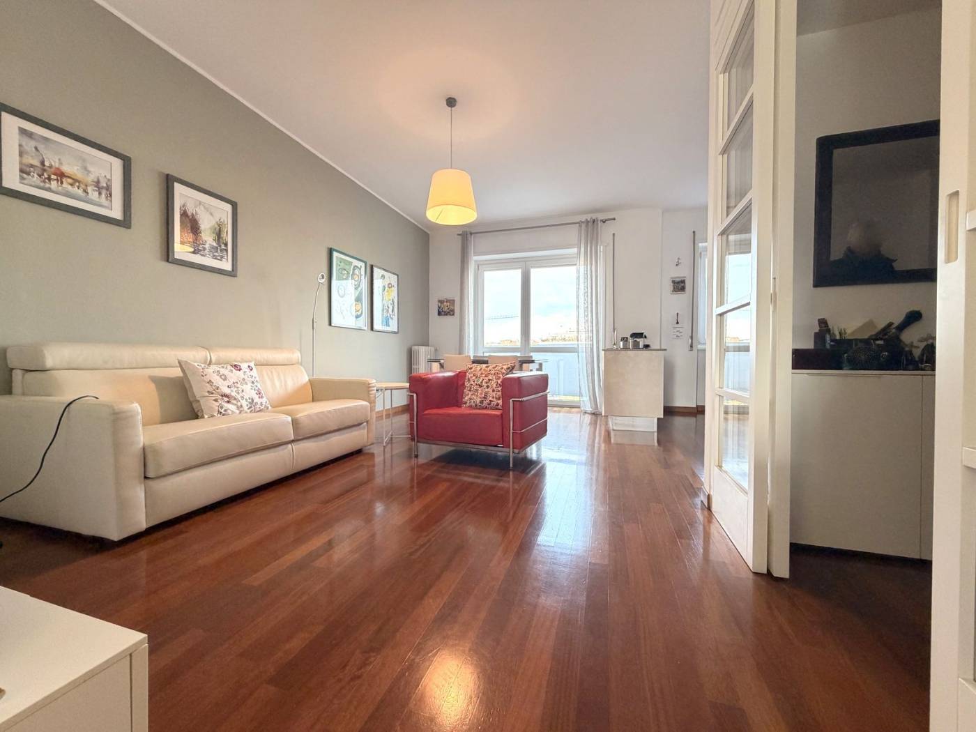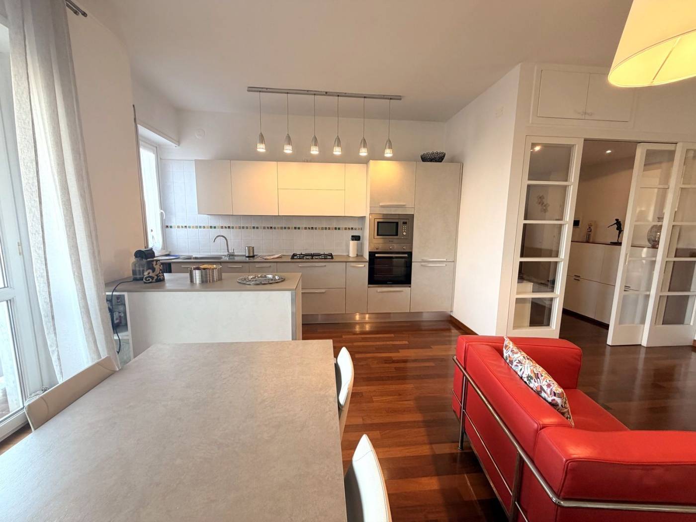 Rifinito interamente in parquet legno Doussier e con serramenti in PVC a doppio vetro per un ottimo isolamento termo-acustico, l'appartamento gode di una doppia esposizione est/ovest che garantisce luminosità durante tutto il giorno. Completano la proprietà un vano cantina e un vano solaio, utili per riporre oggetti e attrezzature.