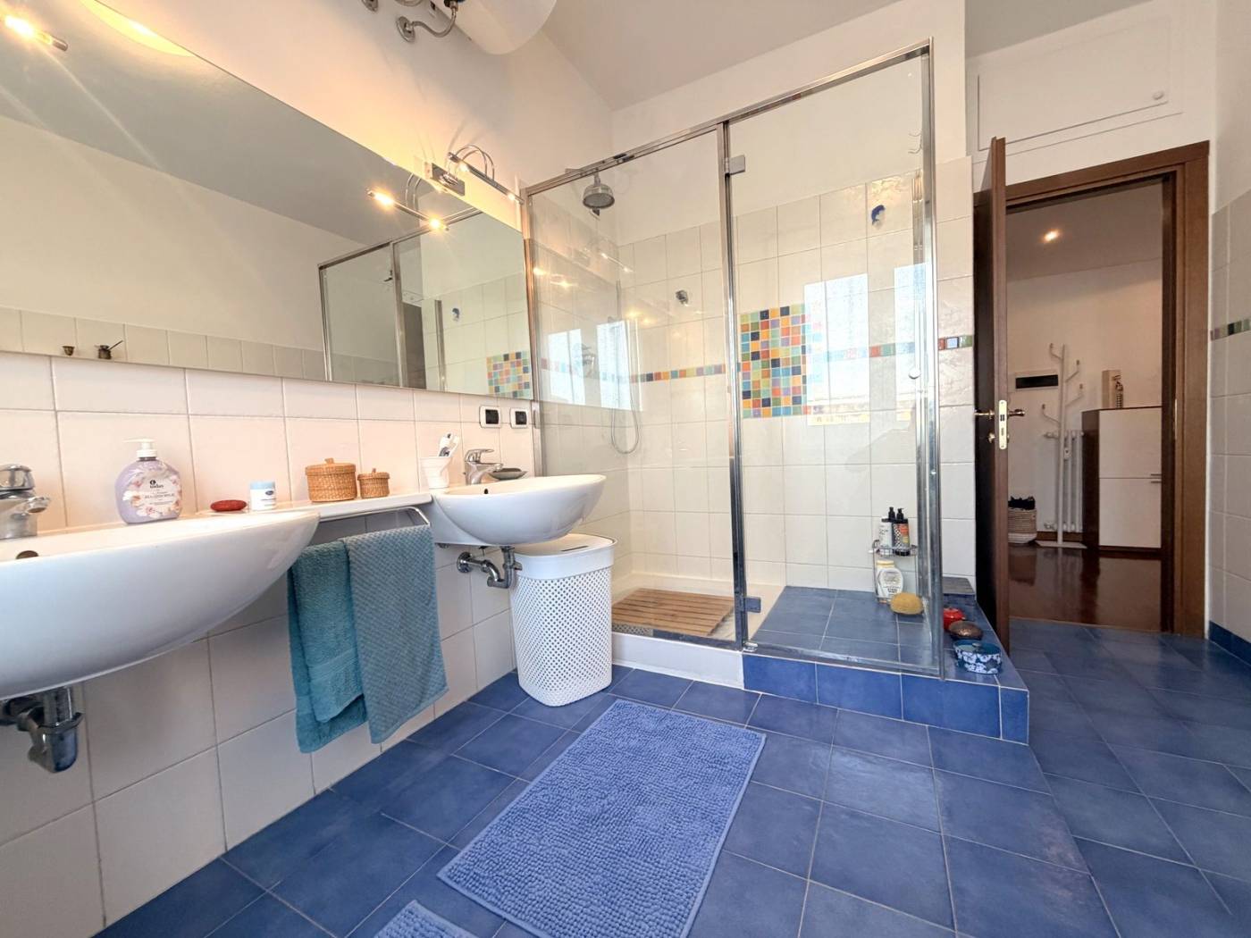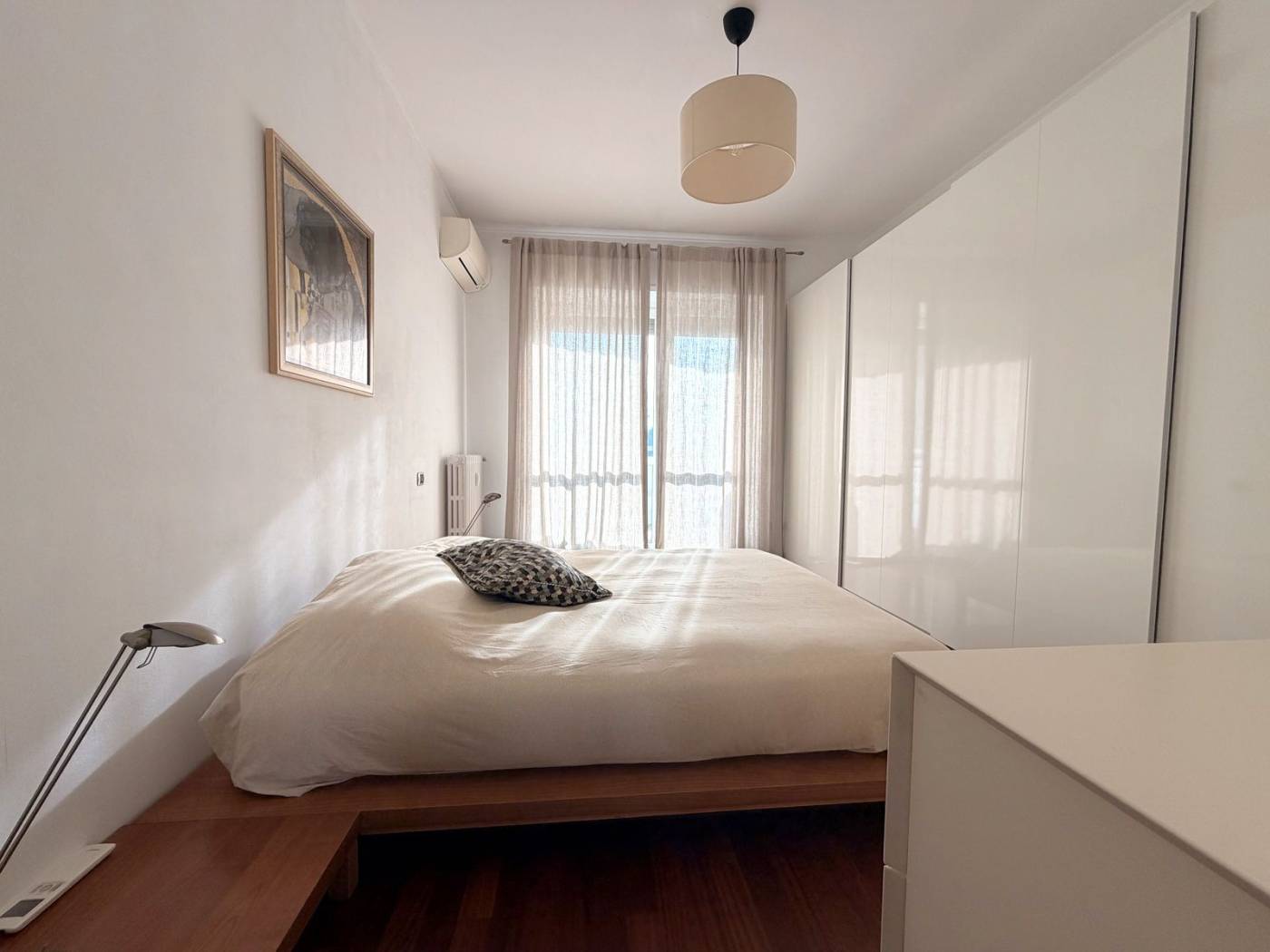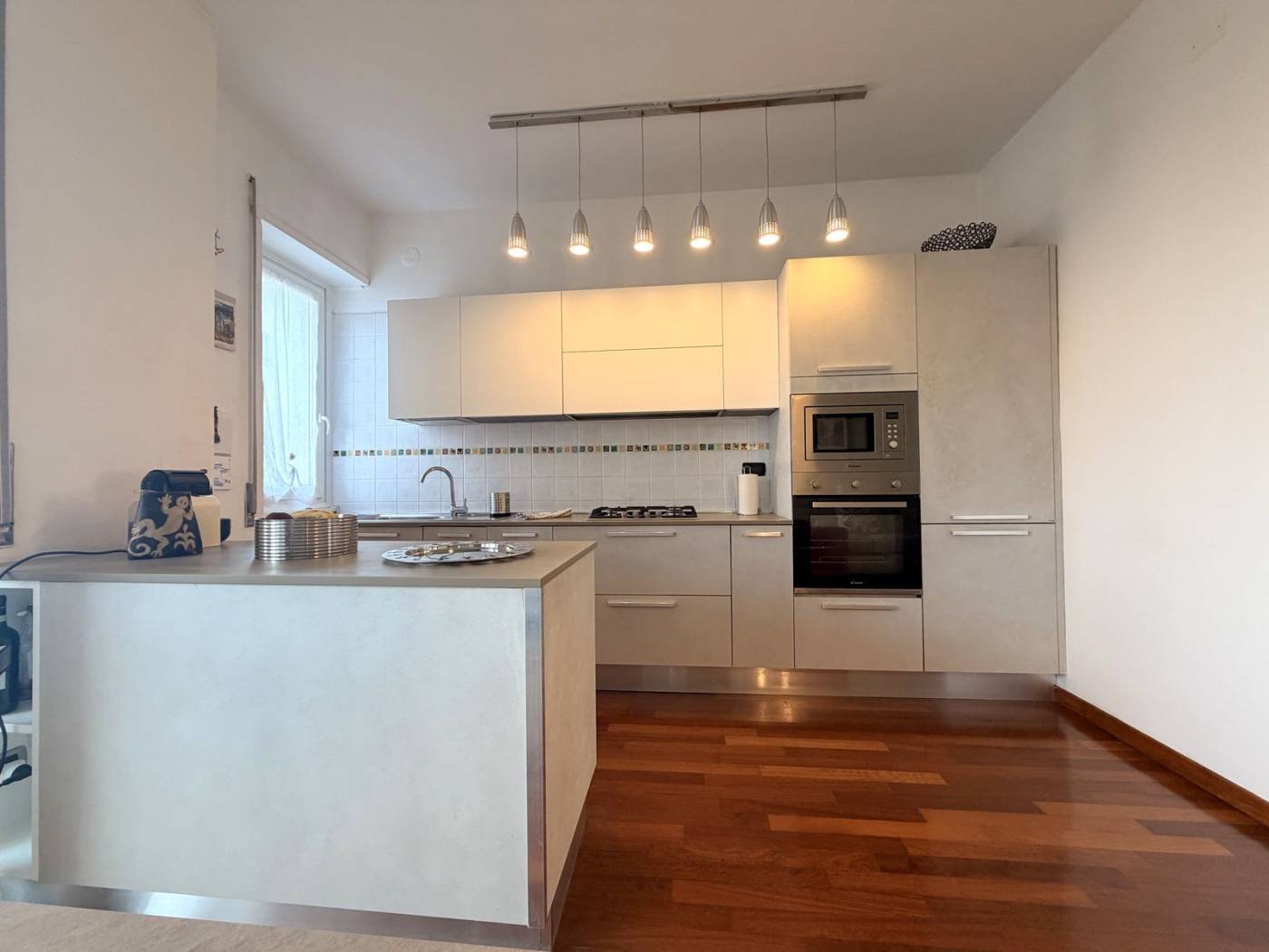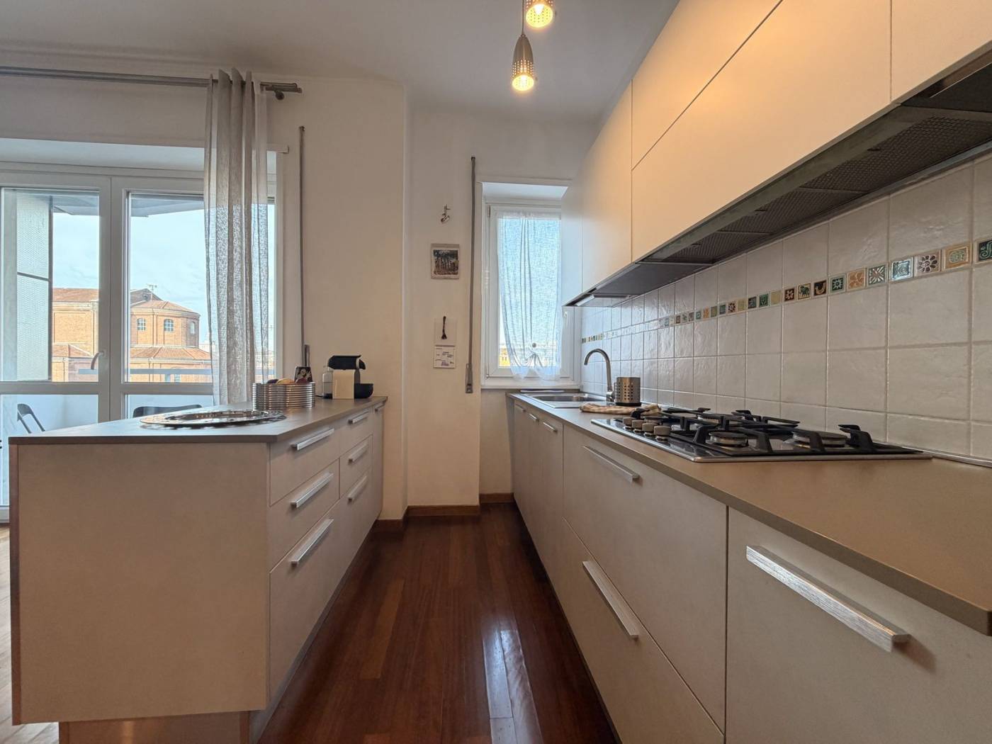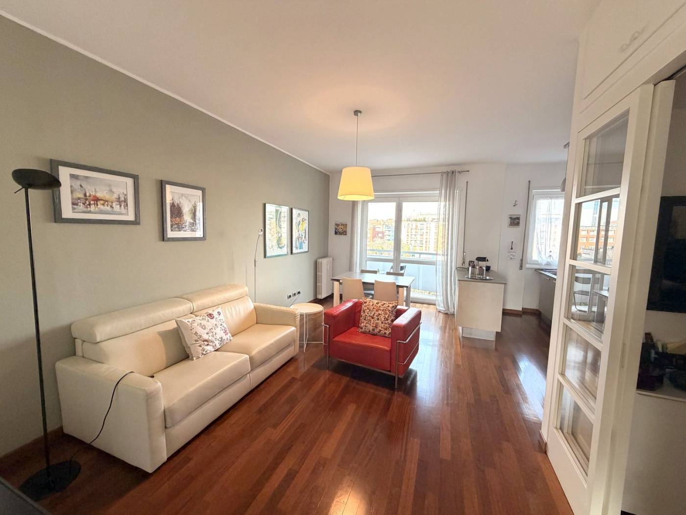 L'appartamento è composto da due locali ben distribuiti, con un ampio soggiorno che si affaccia su un balcone, ideale per godersi momenti di relax all'aria aperta. La cucina a vista è perfetta per chi ama cucinare e intrattenere. La camera matrimoniale, anch'essa dotata di un balcone, offre un angolo tranquillo per il riposo. Il bagno è spazioso e finestrato, completo di doppio lavello e doccia doppia, un vero lusso per la quotidianità.
